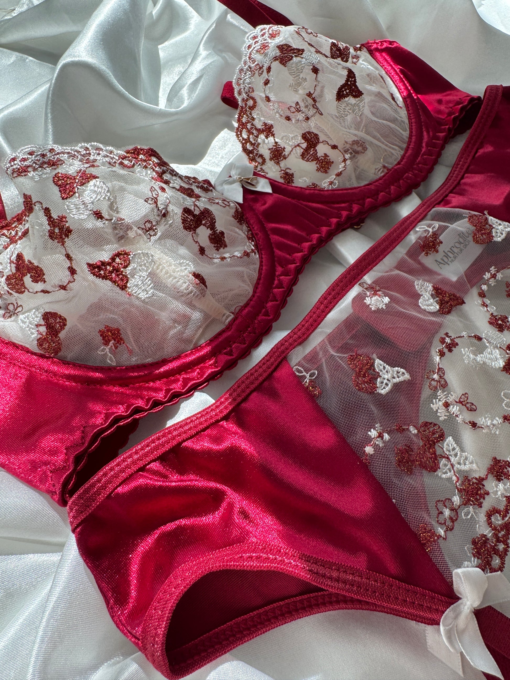 Girls, dieses 3-teiliges Set in cherry-rotem Farbton ist pure main character energy! 🔥 Die leuchtende Farbe, die süßen bestickten Kirschen und oben die mini weißen Schleifchen – kann ein Look noch sweet & spicy zugleich sein? 😍